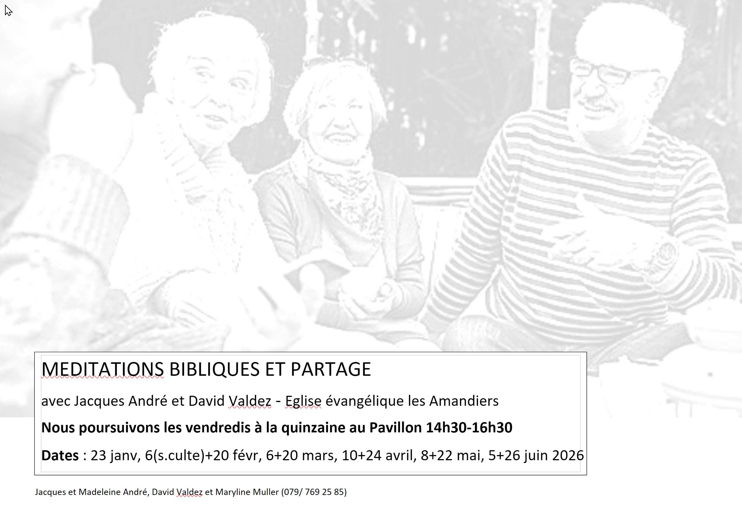 Voici les nouvelles dates pour les méditations bibliques.